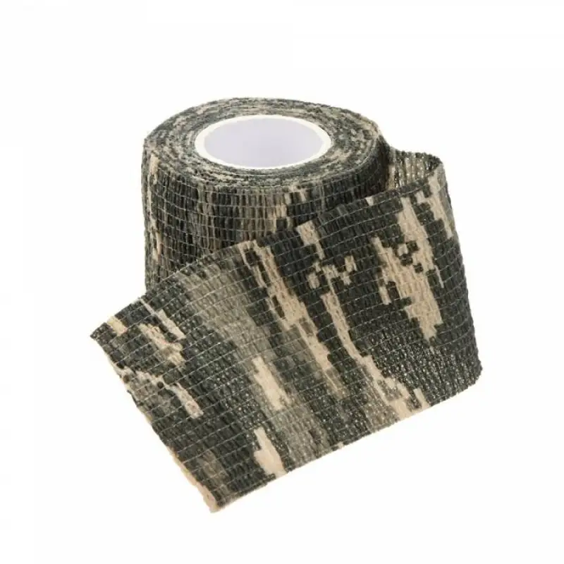 The camouflage bandage for the holder is suitable for use by both military and outdoor enthusiasts. It can be used to camouflage assault rifles, knives, binoculars, flashlights and other accessories. Thanks to its self-locking property, the bandage does not move during use and provides long-term fixation. The bandage provides uniform compression and secure fixation without the use of additional fasteners. Made of lightweight auto-adhesive material with a special fabric structure, it is ideal for sports medicine, traumatology and postoperative therapy. Applying a self-adhesive bandage does not require the use of an adhesive backing, spikes, staples or pins. It is enough to simply roll the desired area close and the fabric will fix itself to the previous layer. The elastic self-adhesive bandage holds well in any place of application.