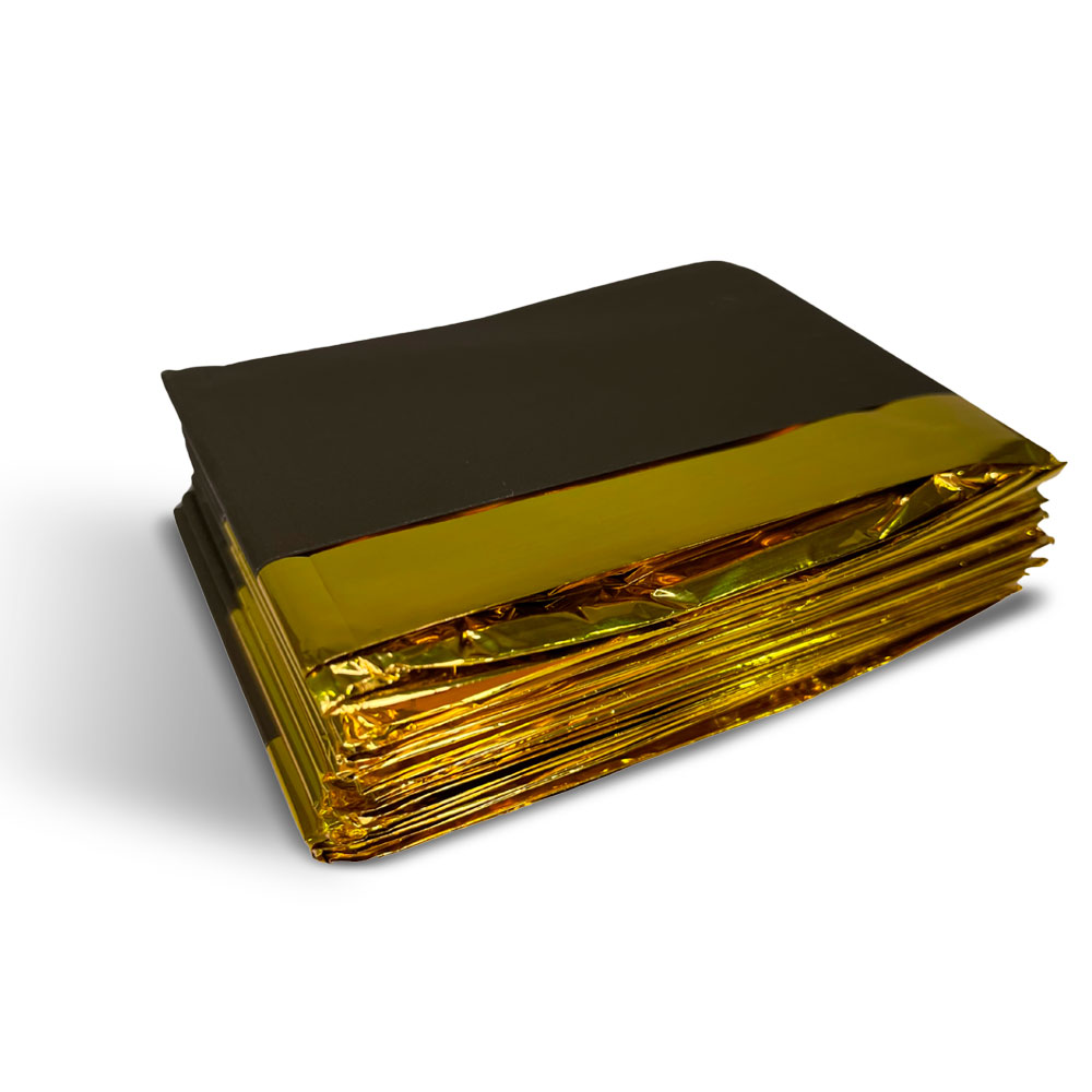 Thermal blanket is a thin PET film covered on different sides with metallized gold and green coating. The life blanket (thermal blanket) is a protective blanket for keeping warm in extreme conditions. Made of material that retains up to 90% of heat, it is compact and lightweight, suitable for emergencies, hiking and outdoor activities. The rescue blanket is a thin PET film coated on different sides with gold and green metallized coating, as a result of which it reflects up to 80% of the heat radiated by the body and allows to maintain the necessary thermoregulation. In addition to its light weight and water and airtight properties, the blanket is highly durable and can be used for transportation of the injured person.